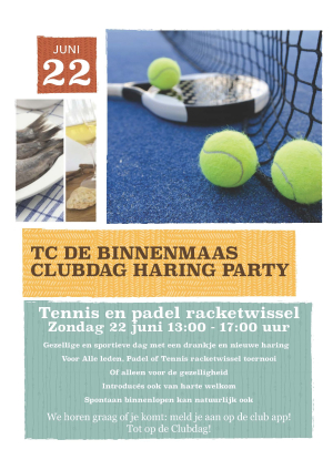 Na het vette haringtoernooi van 22 juni is het tijd om clubhuis, terras en park gereed te maken voor het Binnenmaas Tennis en Padel Open, oftewel ons prachtige open toernooi. Dat doen we met een geweldige groep leden op de klusochtend van 28 juni van 09.30-12.30 uur.