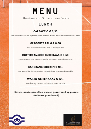 Players ready? Let's eat! Pauzeer je maaltijdbox, stel de bezorgdienst een weekje uit. Eten doe je vanaf zondag 29 juni op de cub tijdens ons geweldige Binnenmaas Tennis en Padel Open. Kom genieten van een diner al fresco en geweldige wedstrijden bij TCDB. 't Land van Wale is ready to serve!