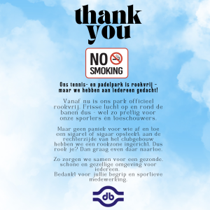 Ons tennis- en padelpark is rookvrij - maar we hebben aan iedereen gedacht!